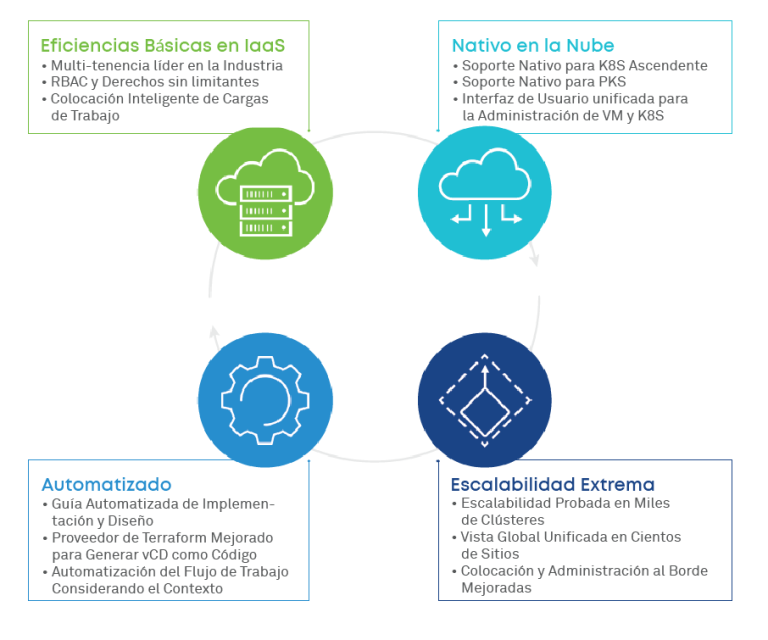 vCloud proporciona a las empresas la flexibilidad, escalabilidad y eficiencia necesarias para optimizar su infraestructura de TI y administrar los recursos de manera efectiva en un entorno alojado en la nube. Las organizaciones pueden automatizar el aprovisionamiento de centros de datos virtuales, ofrecer infraestructuras como servicio (IaaS) y simplificar la administración de los recursos en la nube.